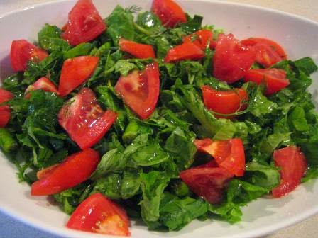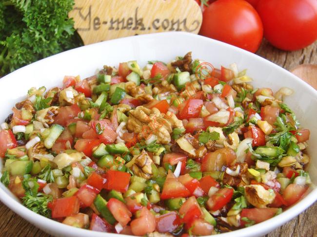 İnce kıyılmış domates, Sivribiber, Soğan, Salatalık, Salça, Sarımsak, Nar Ekşisi, (Az Acılı)